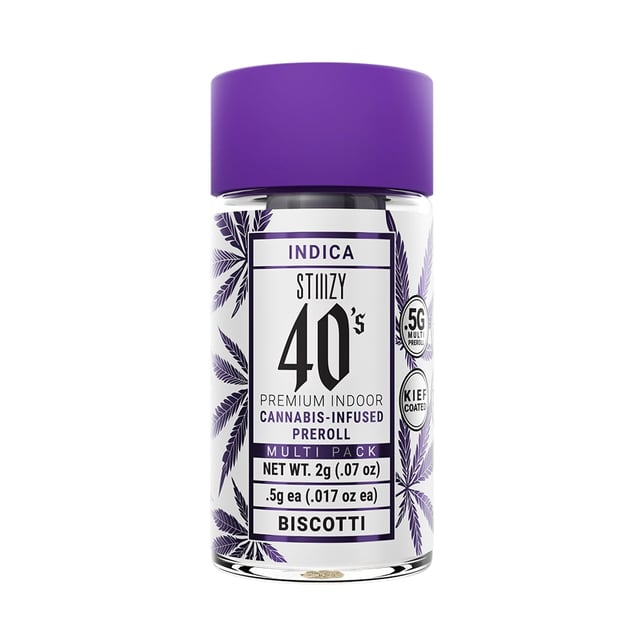 Elevate your pre-roll game. Stiiizy 40s pre-rolls are setting the standard with high potency, cannabis infused joints coated evenly with kief. Using our proprietary live resin infusion methods, we've designed every pre-roll to offer 40%+ THC potency with a unique flavor profile. With a smooth inhale and tasteful exhale, each and every Stiiizy 40 is packed with indoor grown flower, specifically made to ensure a potent and long-lasting high. Spark up the 40s.