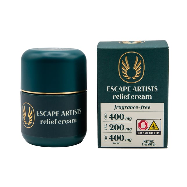 Sensitive to fragrances? No problem. Escape Artists 2:1:2 Relief Cream comes in a fragrance-free version that packs the same great 400mg each of CBD /THC and 200mg CBG as our other award-winning formulas. Our gentle water-based cream is a winner even for finicky skin. Feel free to reapply as needed throughout the day.