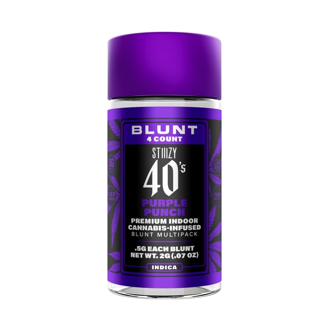 Every STIIIZY 40's blunt features a half gram of their flower and a live resin infusion. Their blunts are rolled with care in 100% tobacco free, kief dusted hemp wraps that ensures a clean, even draw every time. STIIIZY named them 40's to highlight their exceptional potency, with each blunt consistently scoring high in THC and overall cannabinoid content. Thank you live resin infusion!