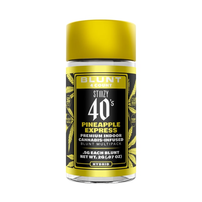 STIIIZY 40's Mini Blunts Multipack is filled with premium grown STIIIZY cannabis and packed in individual glass vials to maintain freshness and potency. Each 40's Mini Blunt is rolled with 100% tobacco free, kief dusted hemp wraps which packs a flavorful and potent punch with every exhale, and the tightly secured tips have been perfected to provide an amazing and consistent burn every time. The STIIIZY 40's Mini Blunts Multipack is reinventing your high experience by being one of the first to introduce 40% THC and total cannabinoids potency with special live resin infusion.