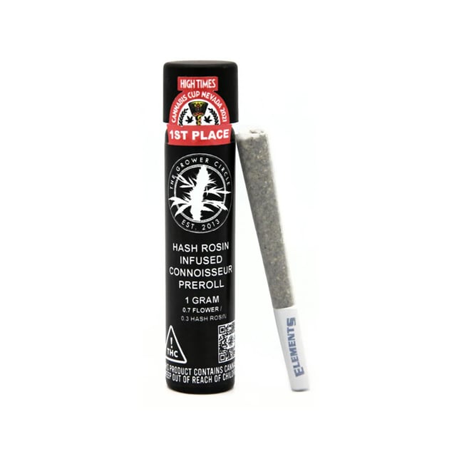 The Grower Circles Hash Rosin Infused Prerolls are rolled with 100% connoisseur flower and infused with hash rosin.