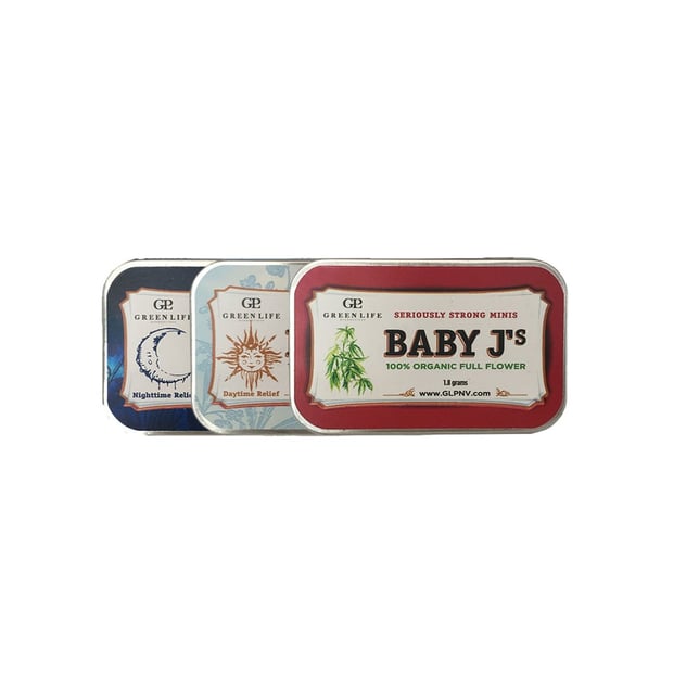 Six individual .3g mini pre-rolls. Six of the best Green Life Productions strains shrunk down into the perfect size joints known as "Baby J's".