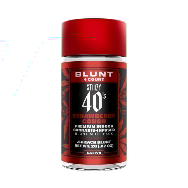 STIIIZY 40's Mini Blunts Multipack is filled with premium grown STIIIZY cannabis and packed in individual glass vials to maintain freshness and potency. Each 40's Mini Blunt is rolled with 100% tobacco free, kief dusted hemp wraps which packs a flavorful and potent punch with every exhale, and the tightly secured tips have been perfected to provide an amazing and consistent burn every time. The STIIIZY 40's Mini Blunts Multipack is reinventing your high experience by being one of the first to introduce 40% THC and total cannabinoids potency with special live resin infusion.